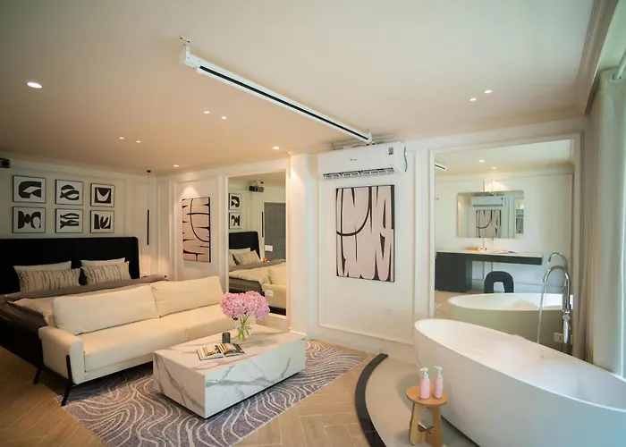The rooms comprise a balcony and a dining area complete with an air conditioner, as well as a flat-screen TV with satellite channels. Self-catering facilities include an electric kettle, a fridge, and kitchenware. A bidet, a spa bathtub, and a shower, along with hair dryers and towels, are also included in the bathrooms.